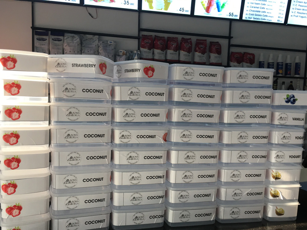 Lưu ý: Đối với Nhà hàng không có tủ trưng bày kem Gelato của Italia. VUA KEM sẽ sản xuất kem và đóng vào trong hộp nhựa hoặc khay Inox có nắp để nhân viên có thể lấy ra ngoài để múc kem rồi lại đậy lại.