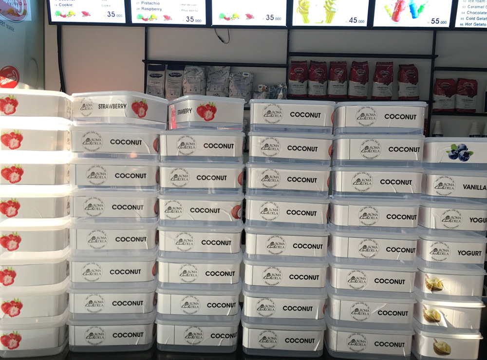 Đối với Nhà hàng không có tủ trưng bày kem Gelato của Italia. VUA KEM sẽ sản xuất kem và đóng vào trong hộp nhựa hoặc khay Inox có nắp để nhân viên có thể lấy ra ngoài để múc kem rồi lại đậy lại.