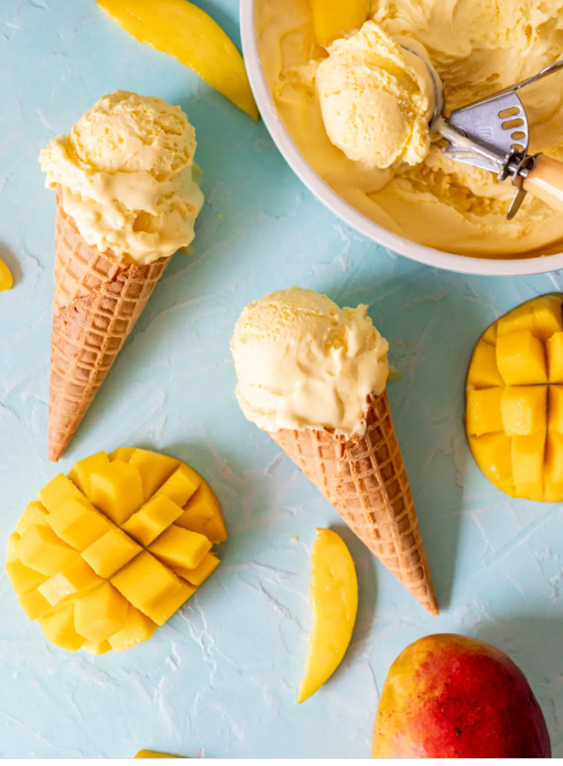 Loại Xoài được sử dụng để làm hương vị kem ở các địa phương khác nhau như có loại kem Xoài phủ Brownies, kem Xoài topping….