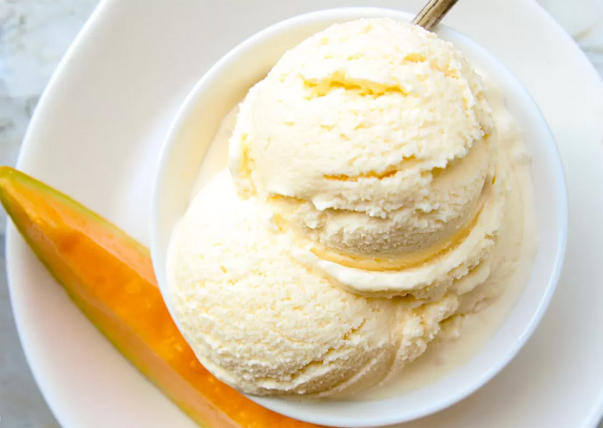 Món kem Dưa vàng được làm từ Melon Paste có mùi thơm ngon của trái dưa vàng, vị béo ngậy của trái cây tạo ra một hương vị độc đáo riêng biệt mà không có một món kem nào có được.